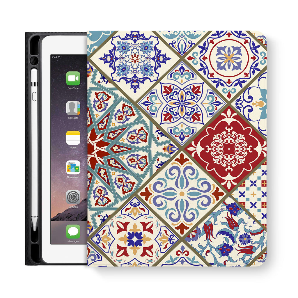 Our Personalized iPad Folio case wakes your iPad when opened and sends it to sleep when closed. Richly-colored and incredibly detailed with Aztec Tribal design. Built- in with Apple Pencil holder and Smart auto sleep/wake function .✓Monogram ✓Personalized Gift ✓Made to Order