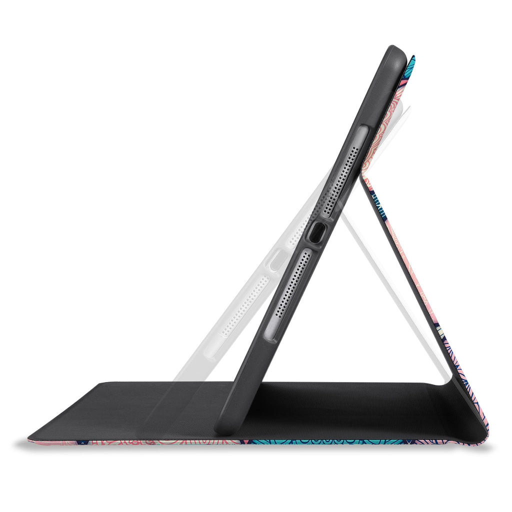 Personalized iPad folio case with Aztec Tribal design works in multiple viewing modes