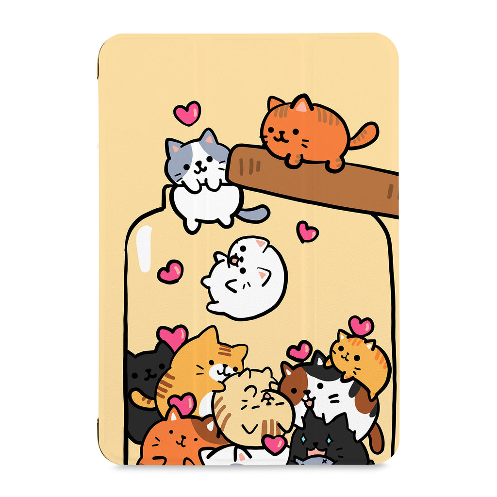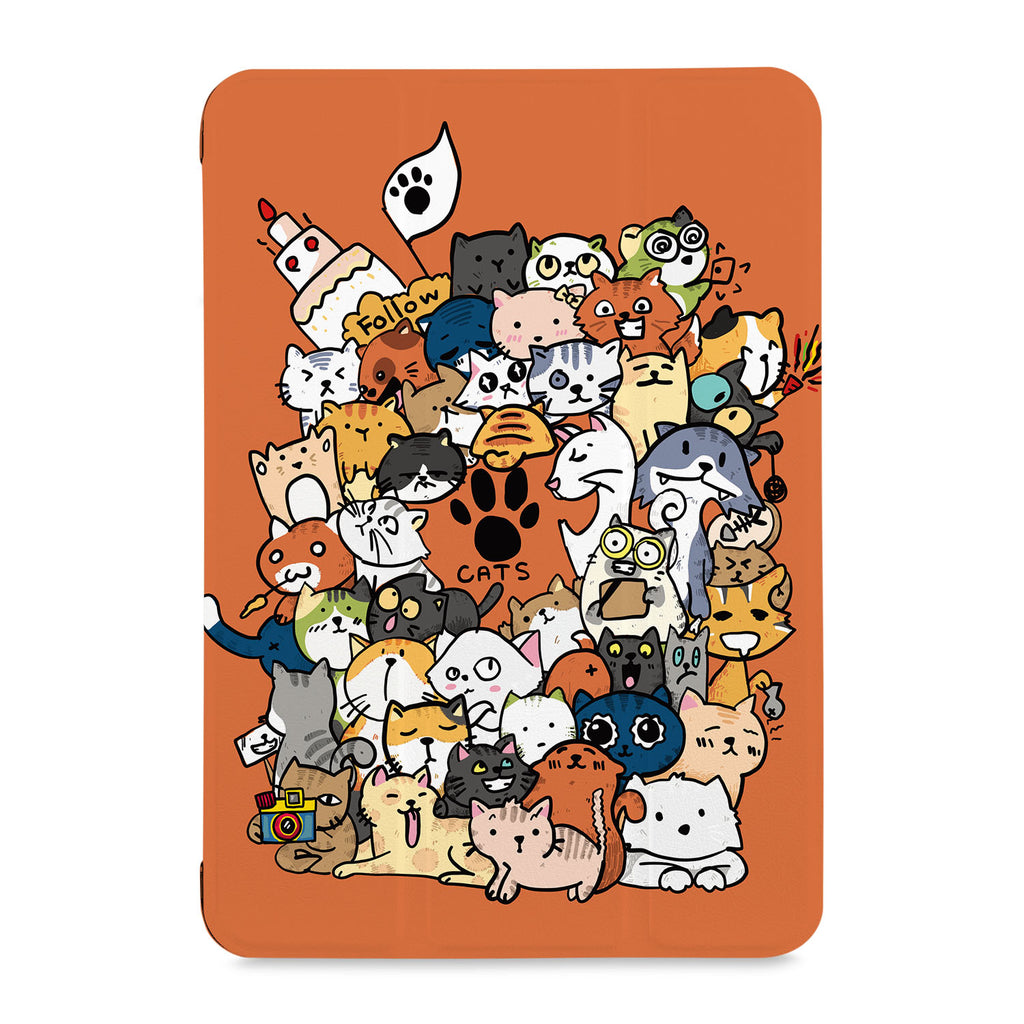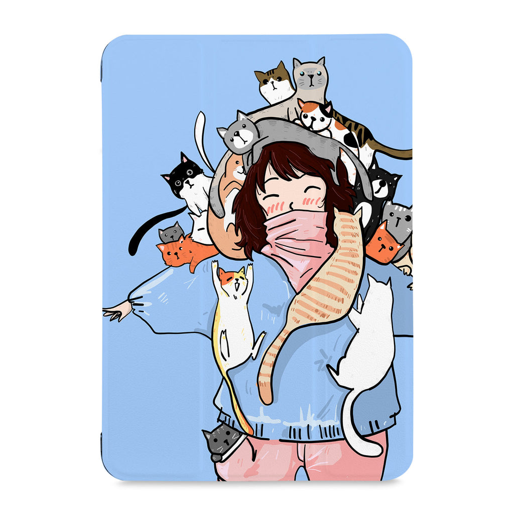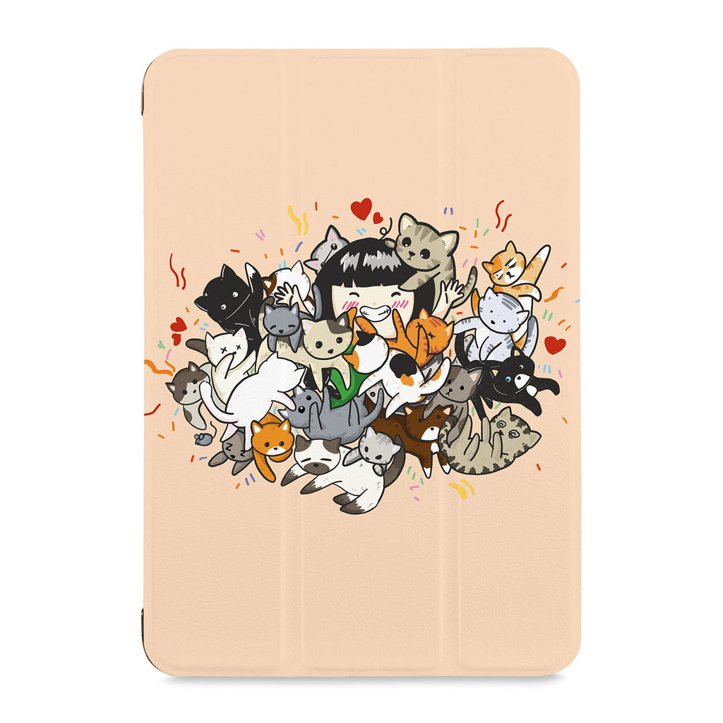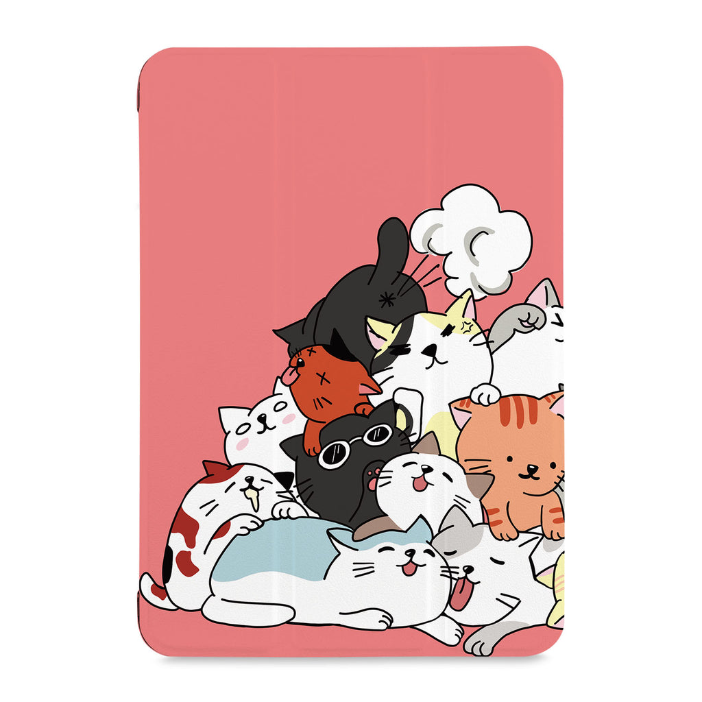 It automatically wakes your iPad when opened and sends it to sleep when closed with Cute Cats design